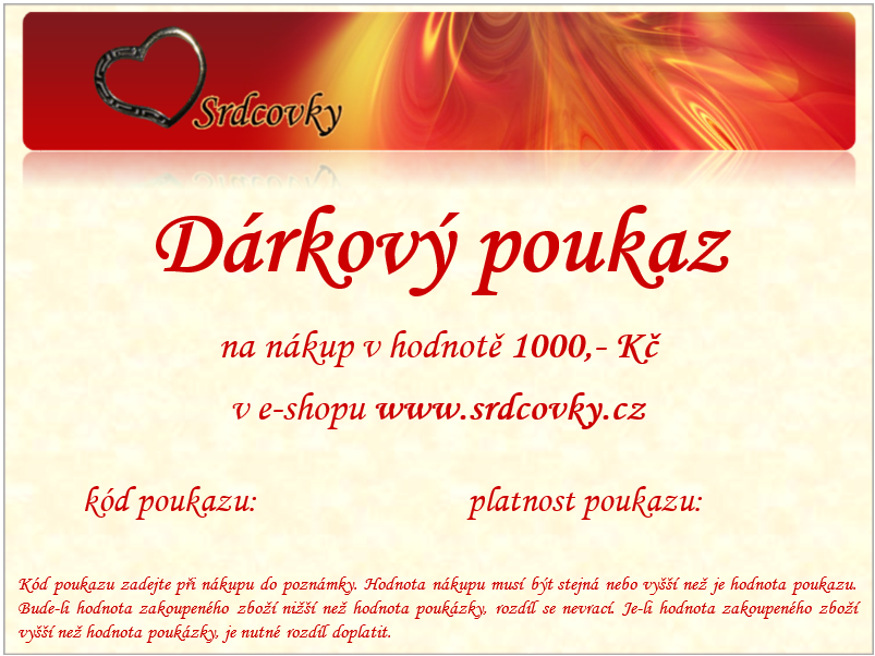 Poukaz platí na celý sortiment e-shopu na www.srdcovky.cz.