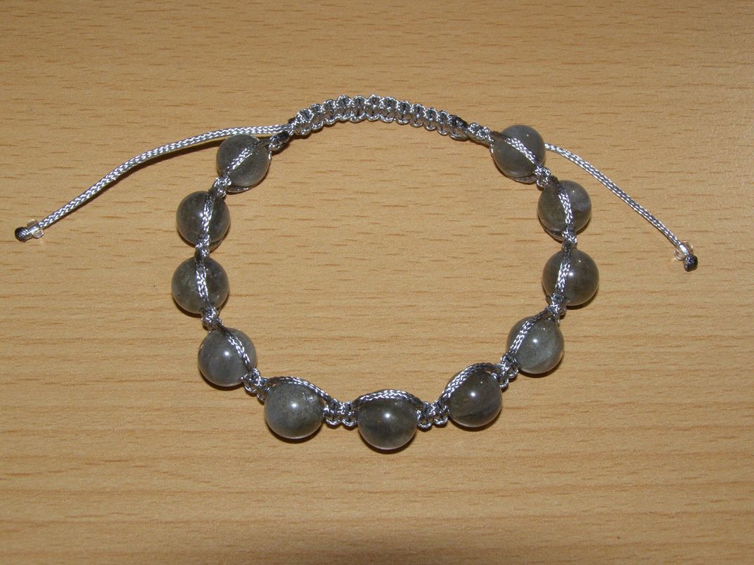 - Drhaný Shamballa náramek - labradorit - šedá šňůrka - dn7