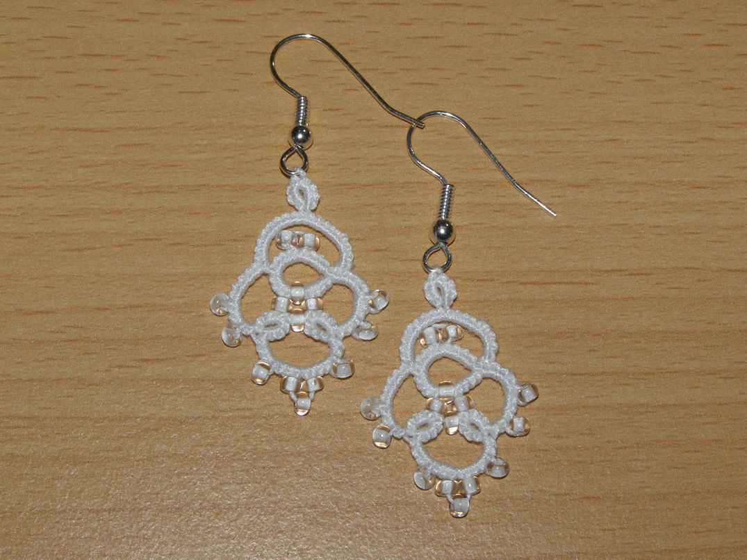 Náušnice - krajka - délka 3 cm (měřeno bez závěsu, pouze motiv), barva bílá, ruční práce.