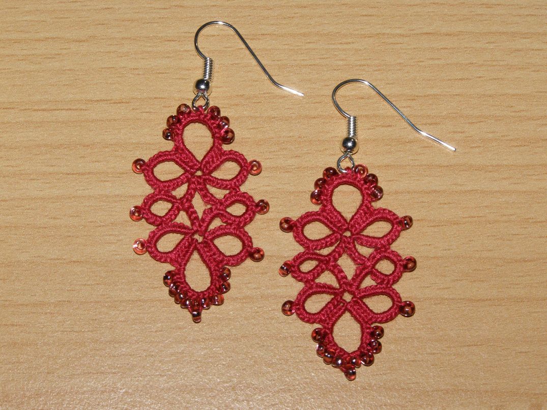 Náušnice - krajka - délka 3,5 cm (měřeno bez závěsu, pouze motiv), barva vínová, ruční práce.