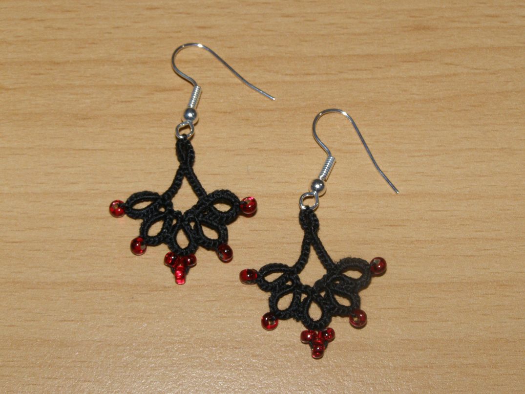 Náušnice - krajka - délka 2,5 cm (měřeno bez závěsu, pouze motiv), barva černá, ruční práce.