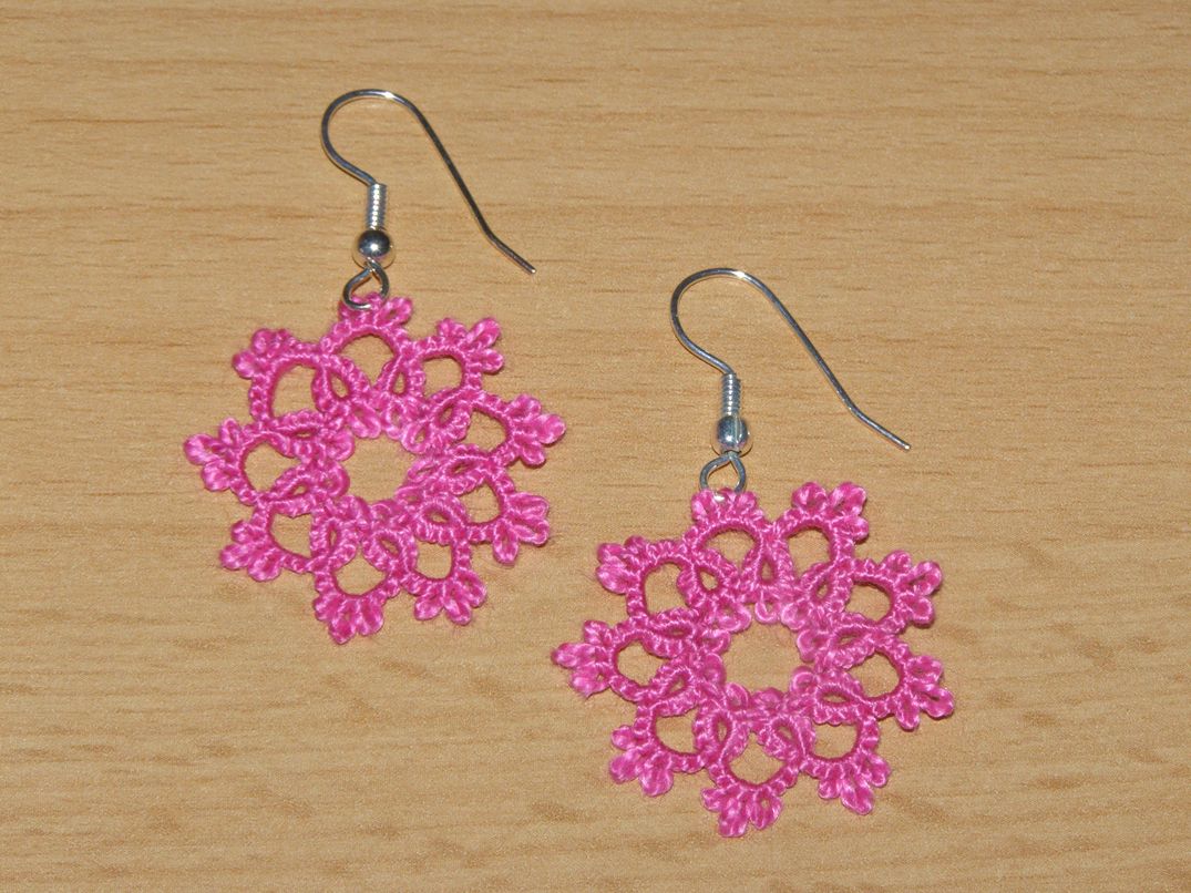 Náušnice - krajka - délka 2,7 cm (měřeno bez závěsu, pouze motiv), barva růžová, ruční práce.