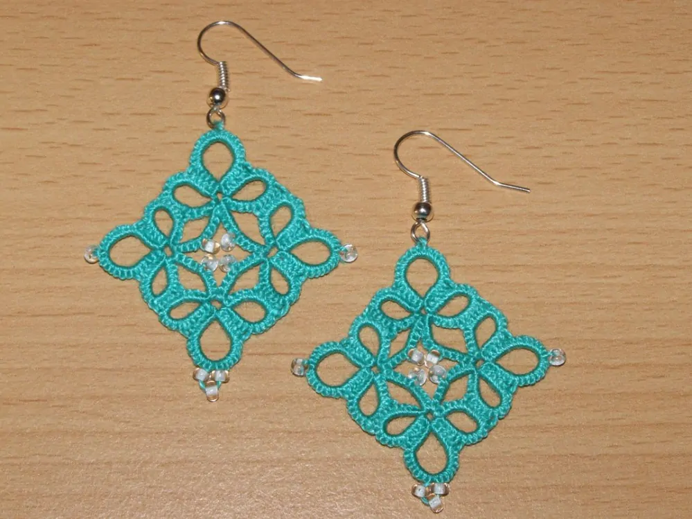 Náušnice - krajka - délka 3,5 cm (měřeno bez závěsu, pouze motiv), barva tyrkysová, ruční práce.