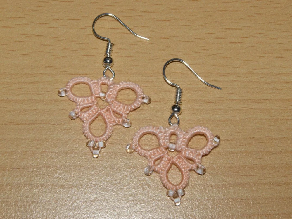 Náušnice - krajka - délka 2,5 cm (měřeno bez závěsu, pouze motiv), barva pudrová, ruční práce.
