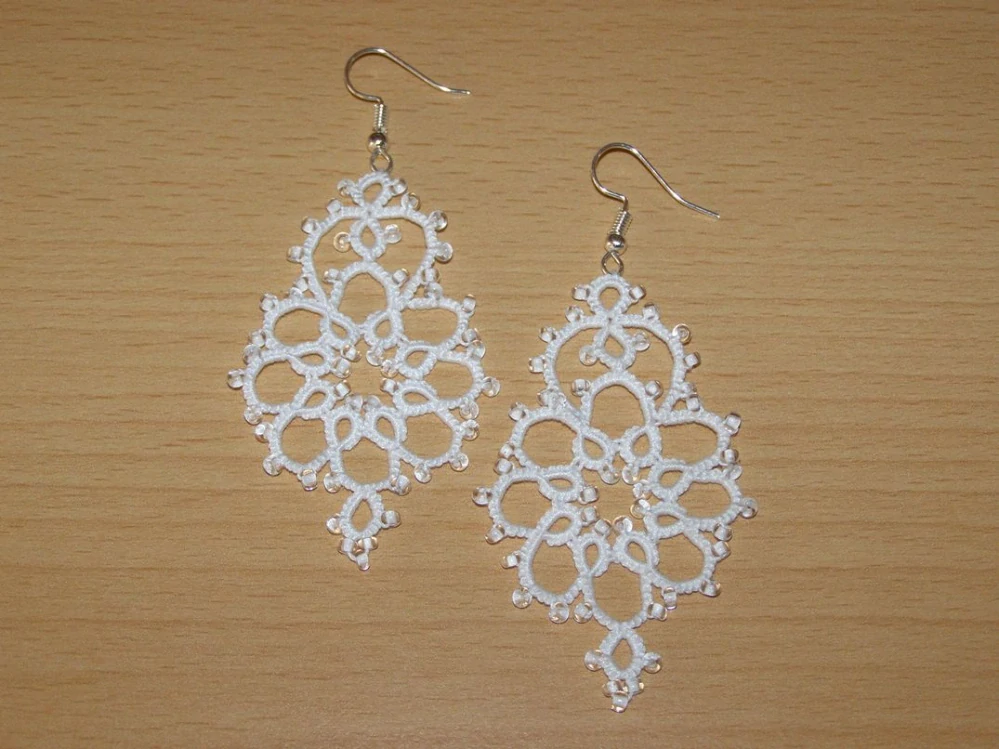 Náušnice - krajka - délka 6 cm (měřeno bez závěsu, pouze motiv), šířka 3,5 cm, barva bílá, ruční práce.