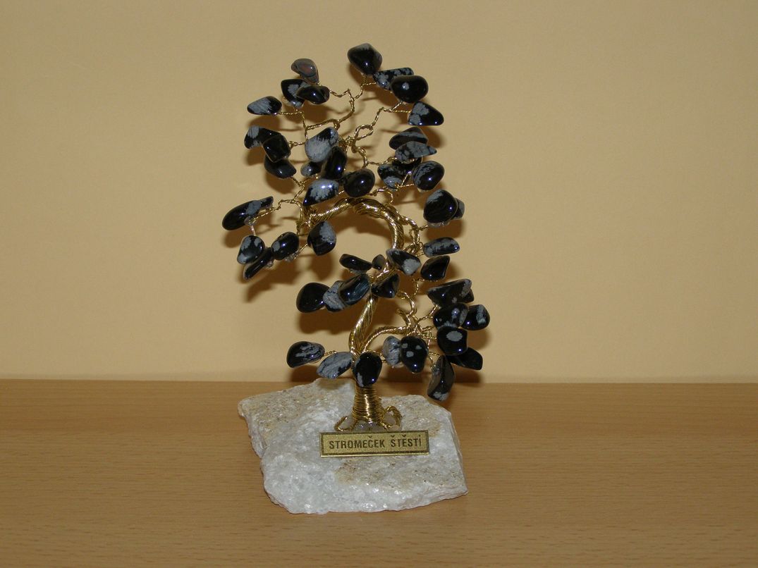 Stromeček štěstí střední - obsidián vločkový - výška 12 cm.
