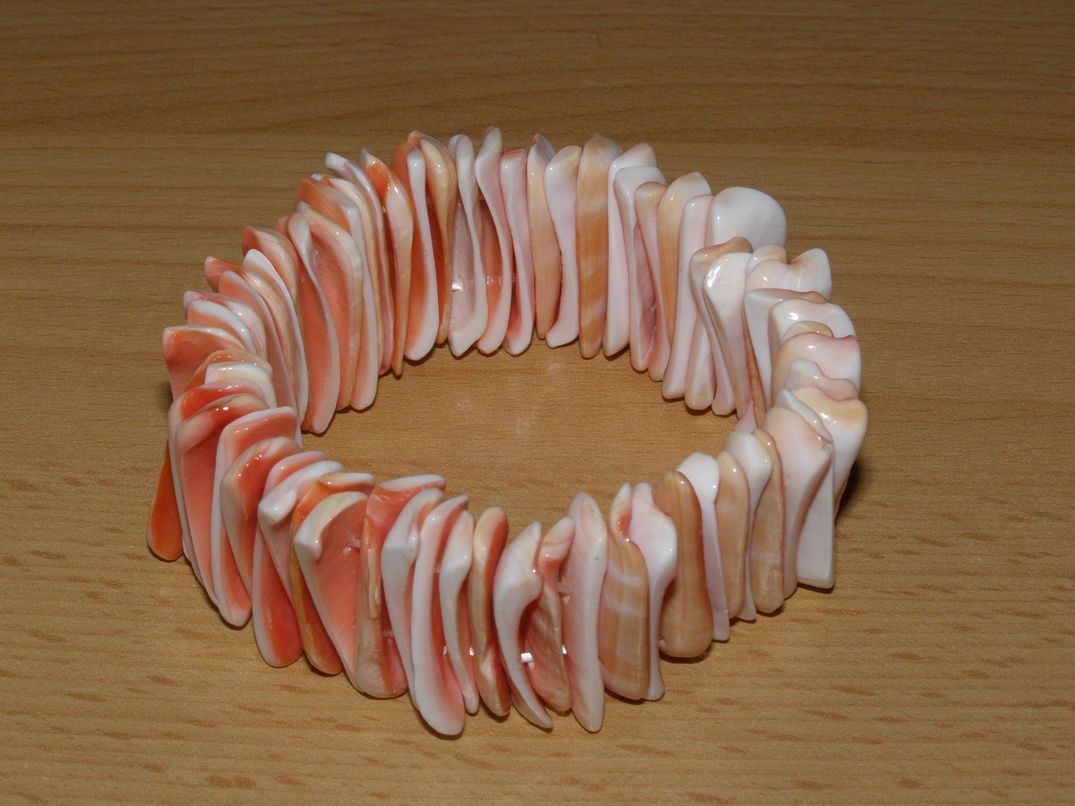 Pružný náramek - mušle růžová - tyčky, šířka 30 mm, vnitřní obvod cca 17,5 cm.