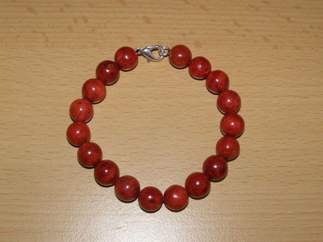 Náramek - korál houbový - kuličky mají průměr 10 mm, vnitřní obvod cca 19 cm.
