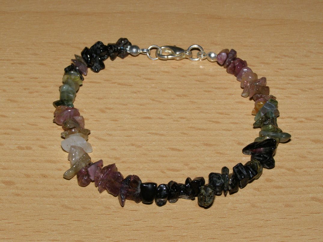 Náramek se zapínáním - turmalín - tromlované kamínky - délka 20 cm.
