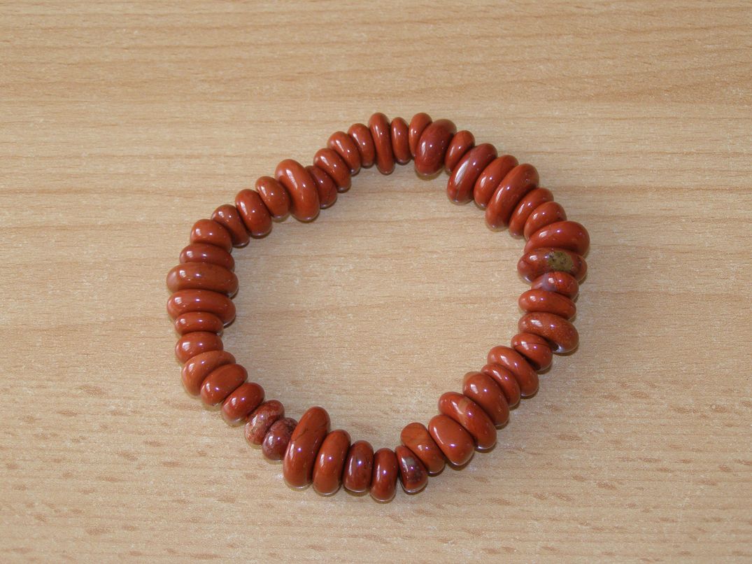 Pružný náramek - jaspis červený - disky - velikost jednotlivých disků je 8 - 12 mm, velikost náramku je cca 18 cm.