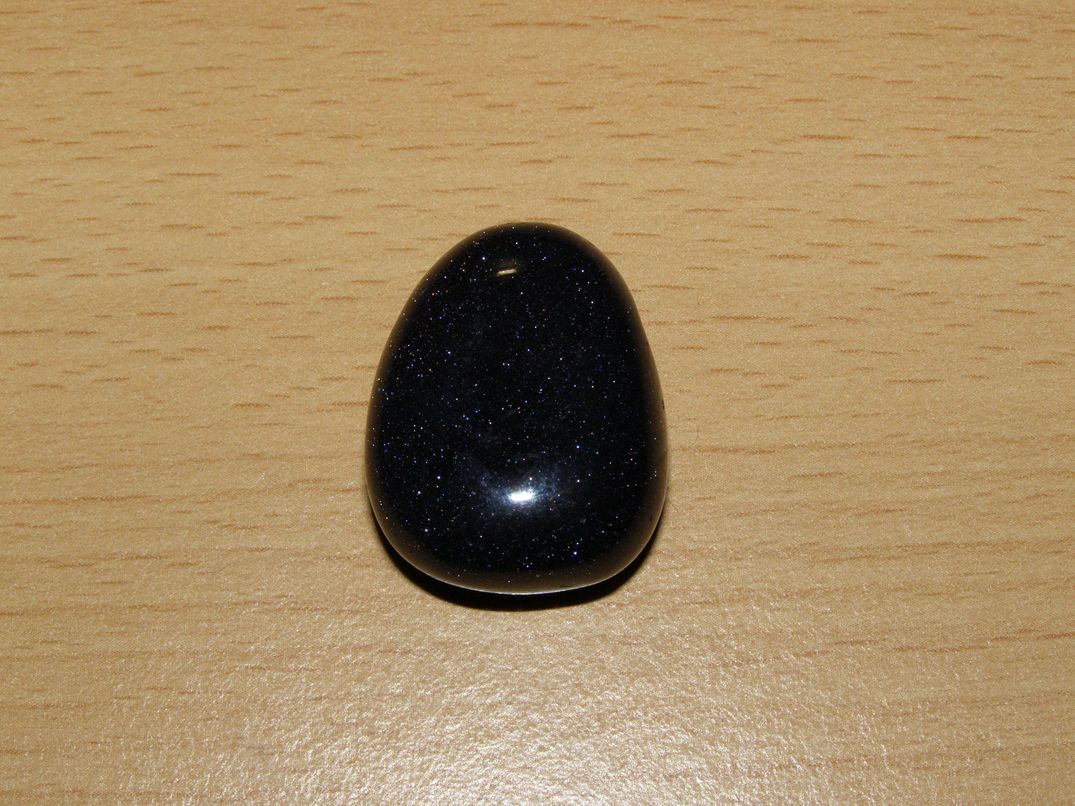 Přívěsek - avanturín modrý třpytivý syntet. - tromlovaný kámen - 26 x 20 mm, v horní třetině provrtaný.
