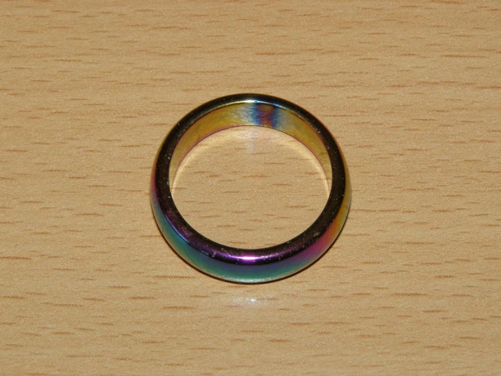Prstýnek - hematit elektricky pokovený bismutem - vnitřní průměr 20 mm.