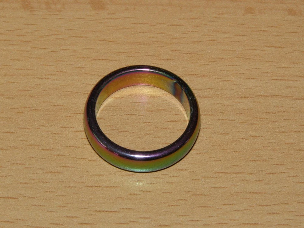 Prstýnek - hematit elektricky pokovený bismutem - vnitřní průměr 19 mm.