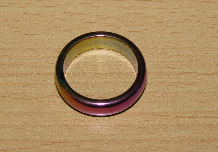 Prstýnek - hematit elektricky pokovený bismutem - vnitřní průměr 18 mm.