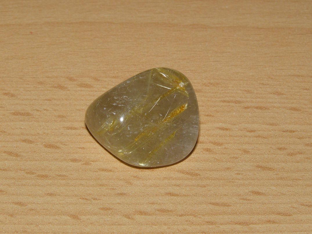 Tromlovaný kámen - rutil v křišťálu (sagenit) - velikost 20 x 18 mm.