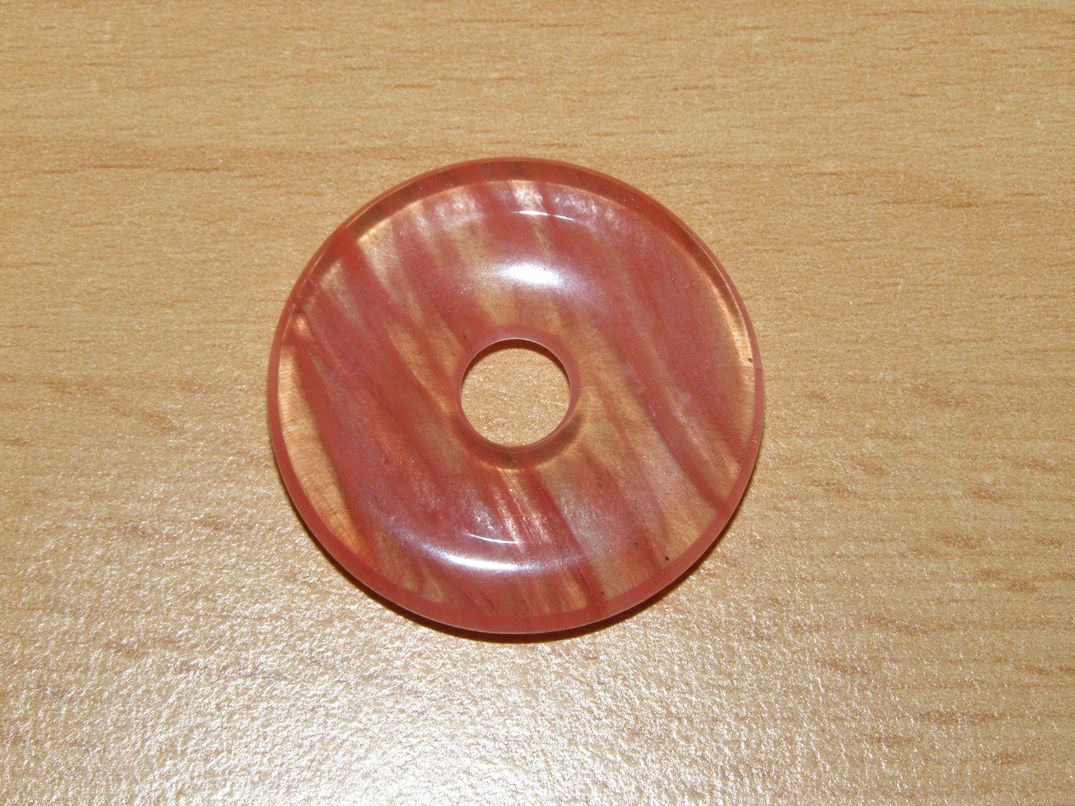 Donut - křemen jahodový (syntet.) - průměr 3 cm.