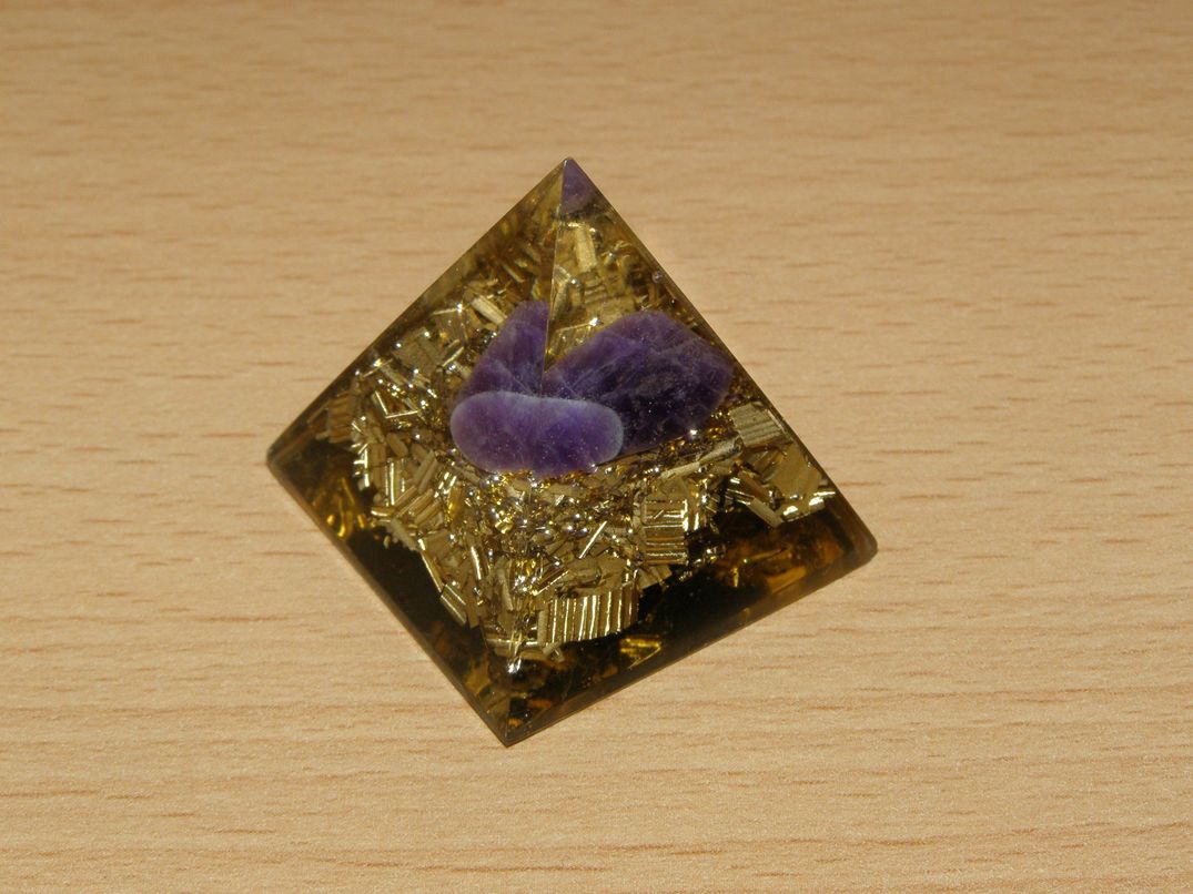 Těžítko - orgonit - pyramida exklusive s ametystem - základna 30 mm, výška 30 mm.