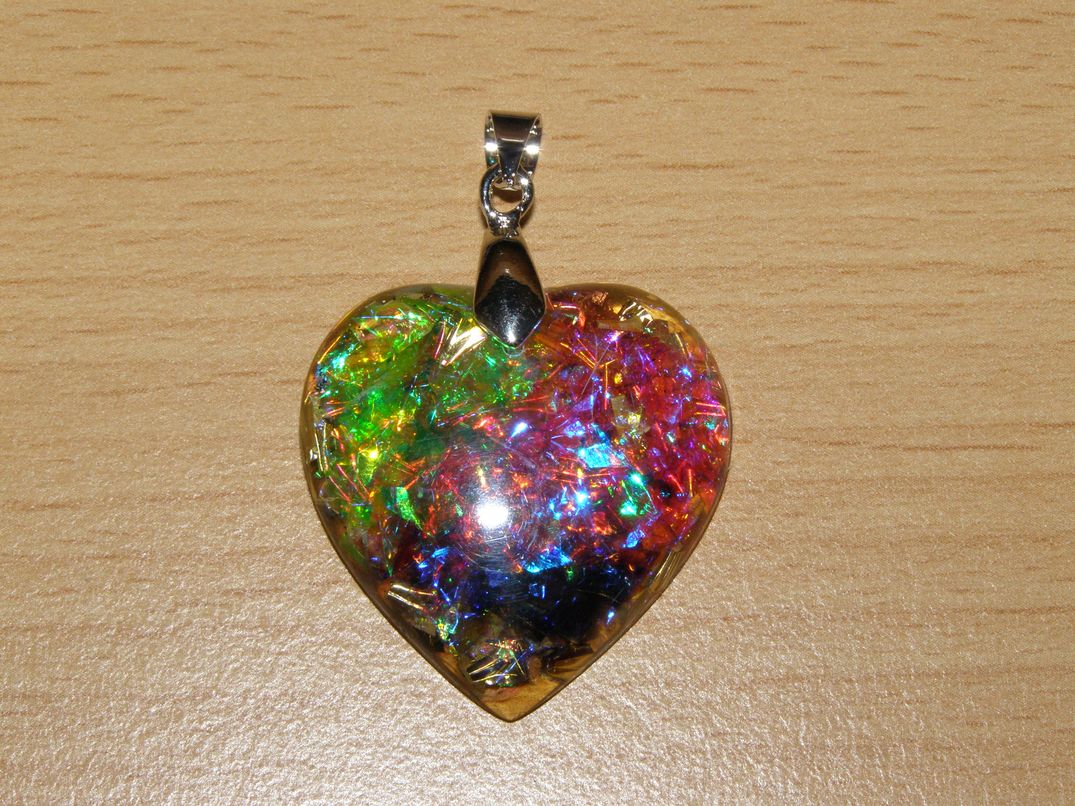 Přívěsek - orgonit - srdíčko (aqua aura) 30 mm, výška 5 mm.