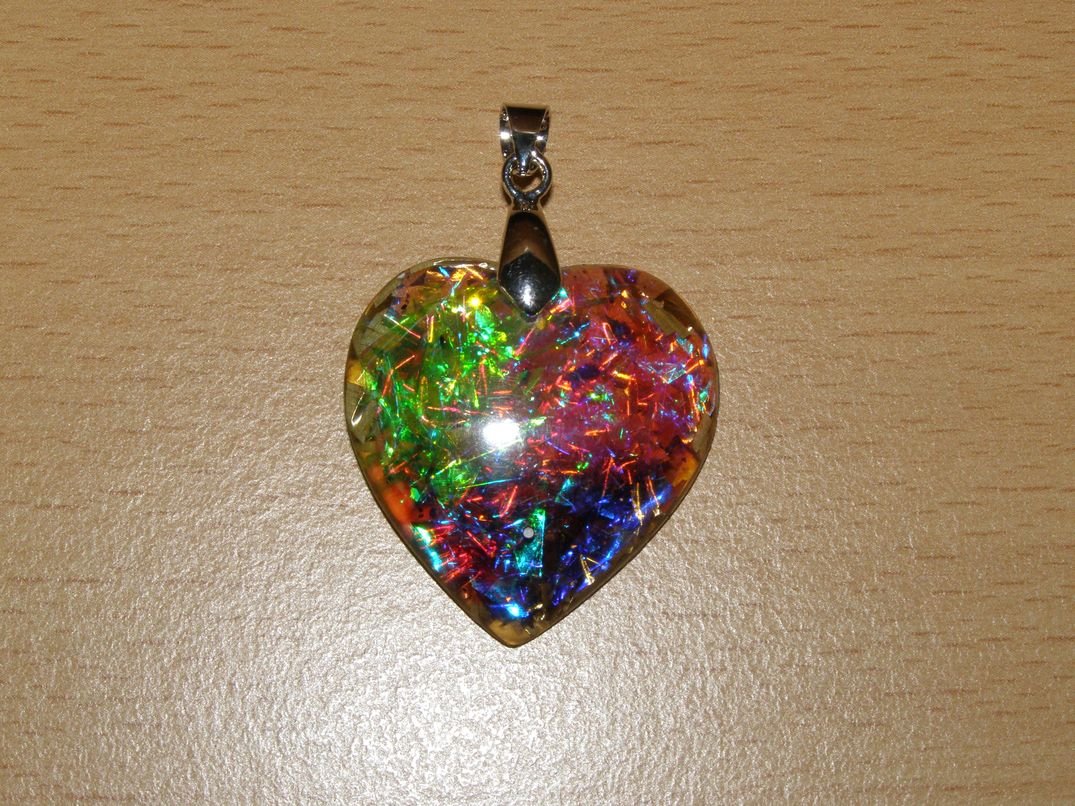 Přívěsek - orgonit - srdíčko (aqua aura) 30 mm, výška 5 mm.