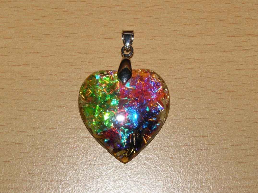 Přívěsek - orgonit - srdíčko (aqua aura) 30 mm, výška 5 mm.