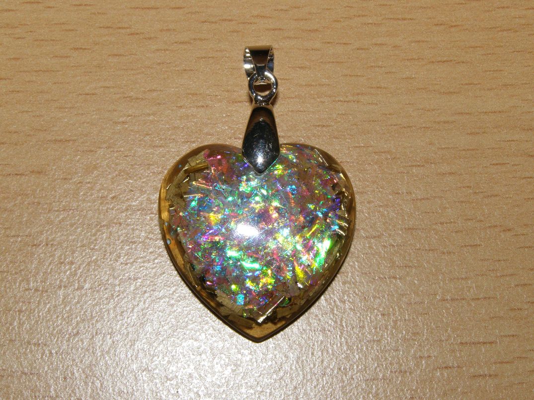 Orgonit - přívěsek - srdíčko efekt měsíční kámen - kpo17Skladem200 Kč/ ks