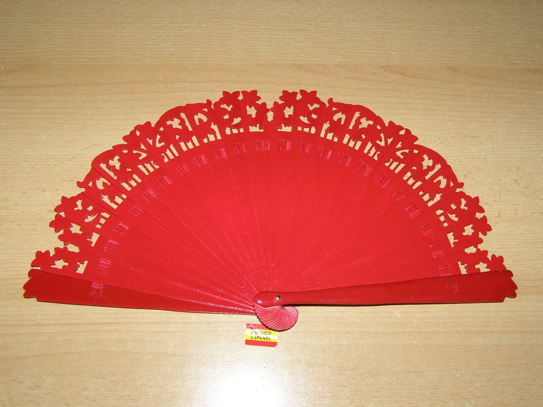 Vějíř z lakovaného dřeva, vyřezávaný - červený.