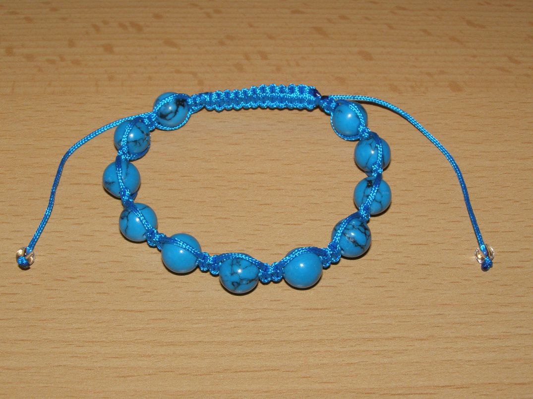 Drhaný Shamballa náramek - tyrkenit - modrá šňůrka - dn21Skladem150 Kč/ ks