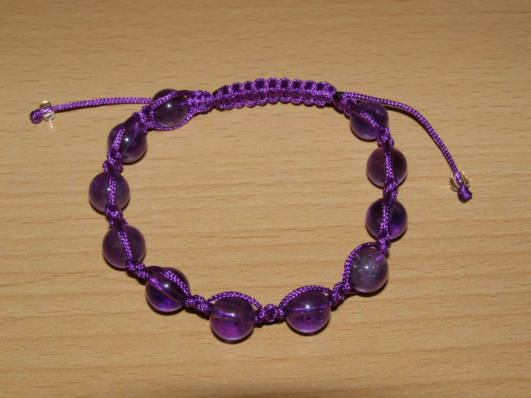 Drhaný Shamballa náramek - ametyst - fialová šňůrka - dn25Skladem250 Kč/ ks