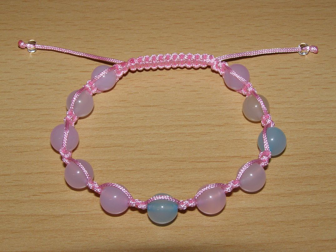 Drhaný Shamballa náramek - achát pastel - růžová šňůrka - dn26Skladem150 Kč/ ks